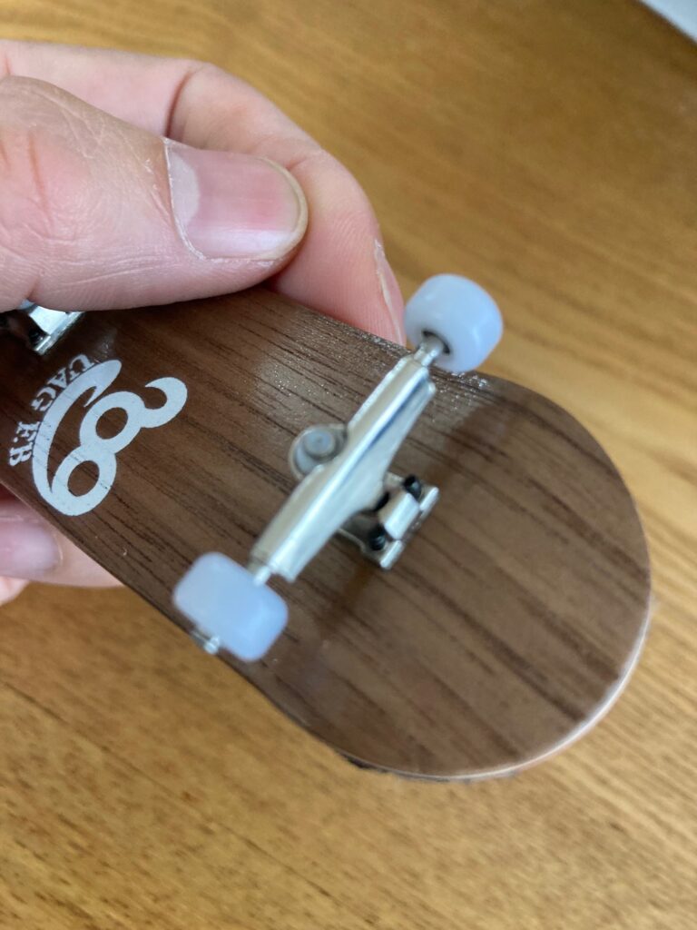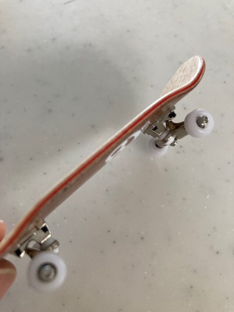 小さいながらも細部がしっかり作り込まれていて、まさに本物のスケボーをドラえもんのスモールライトで小さくしたような質感だ。